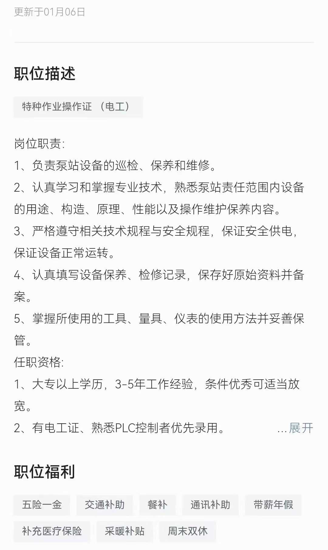 大慶國企直簽,大專以上學(xué)歷,有電工作業(yè)證者優(yōu)先,年后面試,五險一金,薪資3500+交補,餐補,年薪等福利,工作地點讓區(qū)。